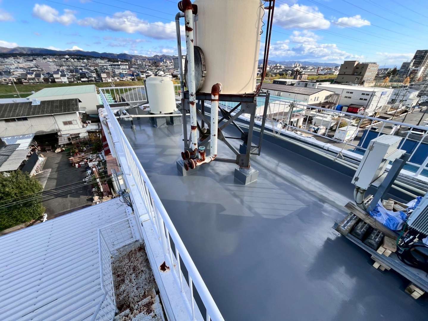 商業施設 防水工事 京都府京都市 商業施設屋上 防水工事 京都府京都市の現場にて、防水工事を行いました。【ご依頼・ご要望内容】漏水が発生している屋上塔屋への防水改修工事【提案・施工内容】ウレタン防水密着工法にて施工既存防水シートの裏に水が回っており、建物内へ雨水が侵入していましたが、現在はしっかり止まっています! 場所 京都府京都市 1 / 1 前の施工事例 マンション・アパート 大阪府藤井寺市 マンション屋上 防水工事 次の施工事例 戸建て 大阪府東大阪市 戸建て屋上 防水工事